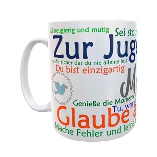 - Personalisierbare Tassen sind eine originelle und schöne Geschenkidee zur Jugendweihe.
